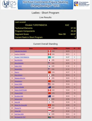 四大陸選手権2017:ケイトリン・オズモンド:SP