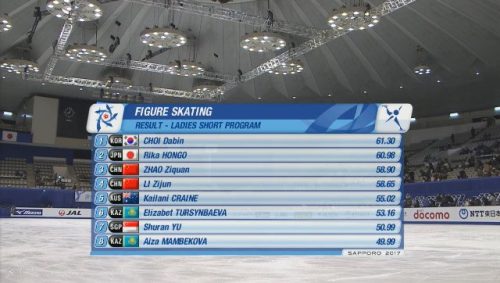 冬季アジア大会は23日、フィギュアスケート女子のショートプログラム(SP)が真駒内公園屋内競技場で行われ、本郷理華(邦和スポーツランド)は60.98点で2位。坂本花織(神戸クラブ)の欠場により、日本勢唯一の出場となった20歳は25日にフリーで逆転Vを狙う。