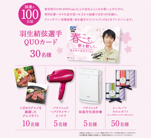 羽生結弦選手を起用!新生活に向けた“ 東京西川 [西川ダウン]キャンペーン ” を3月1日〜4月30日の期間で開催! https://t.co/O4LZBrCOBG pic.twitter.com/KIpIW15Gnr