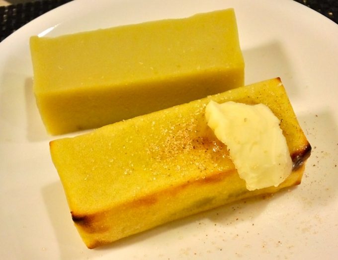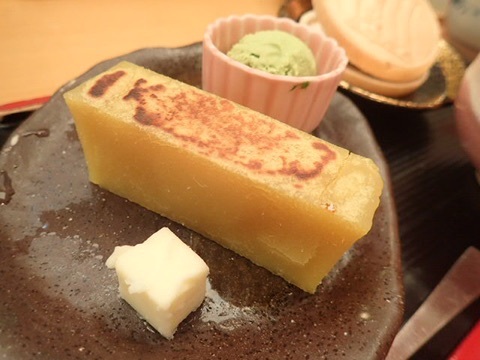 舟和の芋ようかんにバターをのせてトースターで焼くと美味しいと教えてもらい、実際にやってみたら美味しすぎて飛び上がりました。