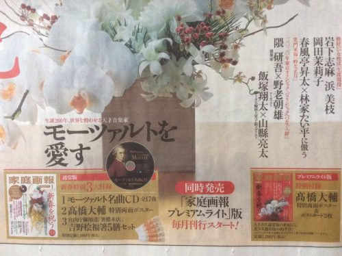 【家庭画報1月号入荷】家庭画報通常版・プレミアムライト版共に入荷致しました。岡田准一さんの特集とともに、高橋大輔さんの特集も充実しています。通常版に付く高橋大輔さんポスターもライト版のポストカードとブロマイドは「必見」です。 女性誌コーナーで展開中です。