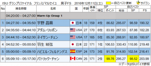 フランス・マルセイユ◇男子ショートプログラム(SP)