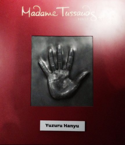 テレビ朝日にビックスポーツ賞の展示品として羽生結弦の手形が設置される