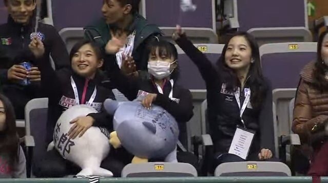 自然な笑顔に癒される。本田真凜選手が男子選手を応援する場面が可愛い