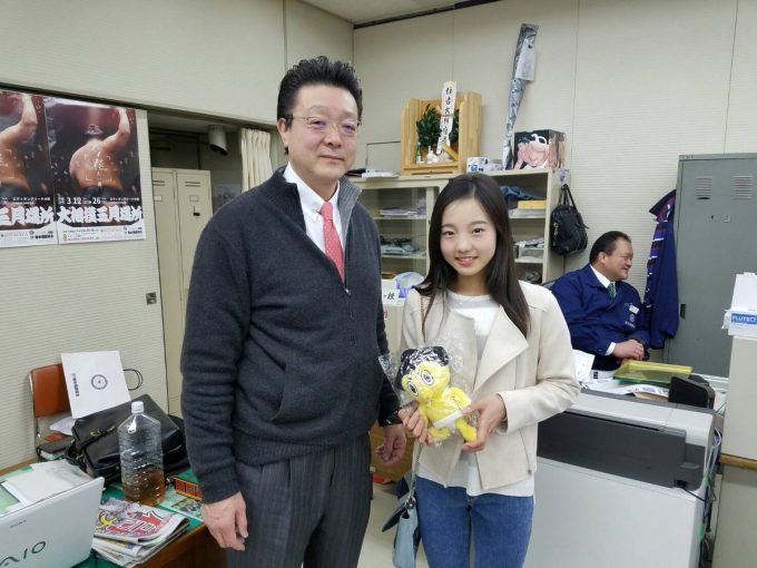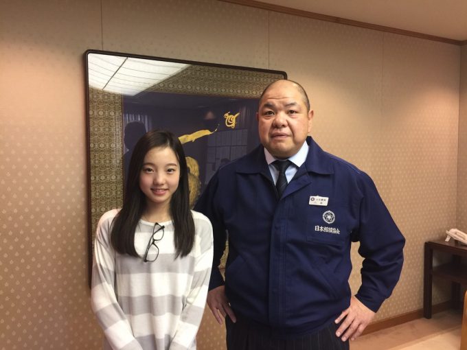 <十二日目の様子>フュギュアスケートの本田真凜選手が、大相撲三月場所が開催されているエディオンアリーナ大阪を観戦に訪れました。写真は、八角理事長、春日野広報部長、伊勢ヶ濱地方場所部長(大阪)と。#sumo pic.twitter.com/YER38GfUq3