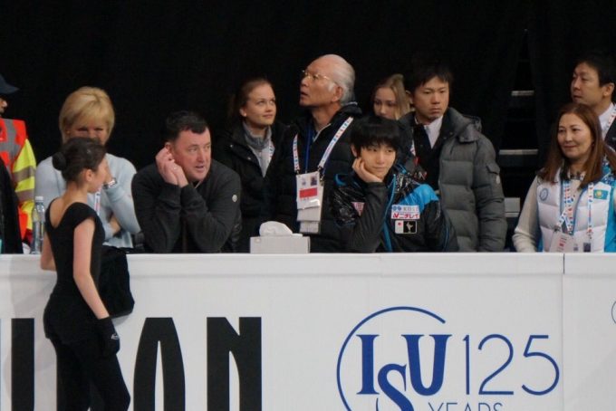 羽生くん、ちょっと出てきてオーサーの真似して出てった!