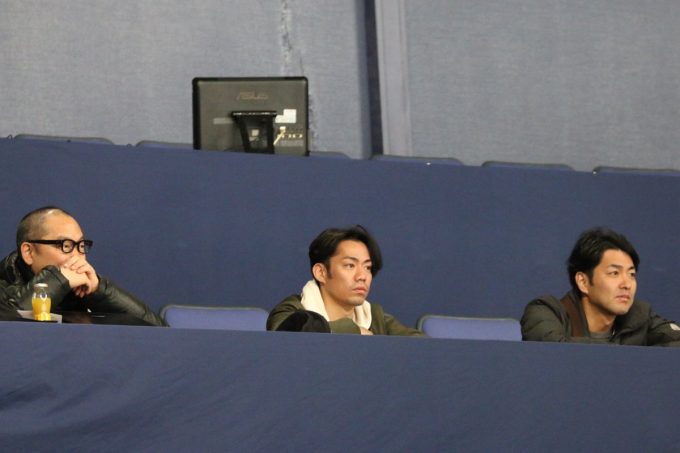 男子練習に来ました。高橋大輔さんも見ています。スコアのことを考えず…そういう見方あって自由だとは思うけど、少し前までスコアを競った現役選手だったのになぁ。