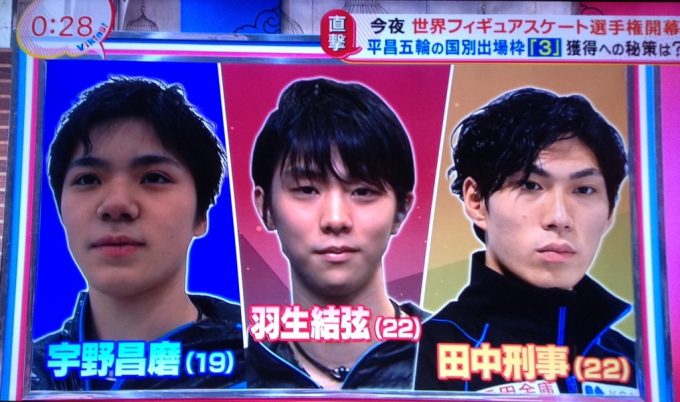 これから男子の滑走順の放送するらしいけど、生で来るのかな