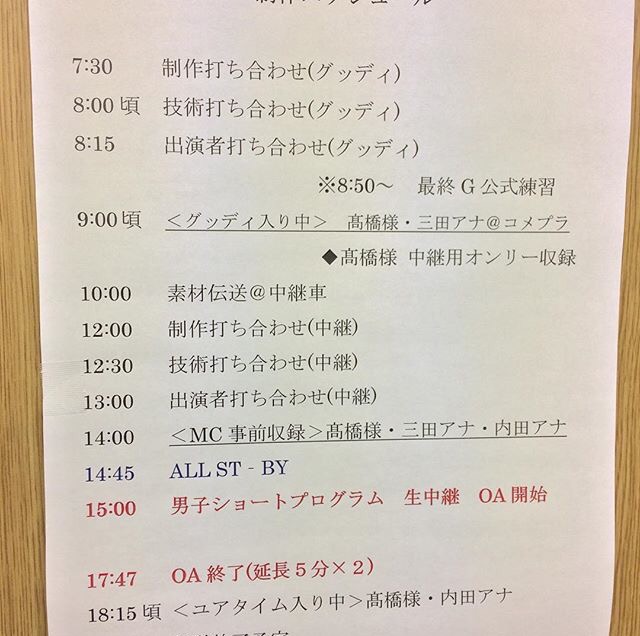 フジの中継日程表らしいけどこれに公式練習見学も入るから忙しいな