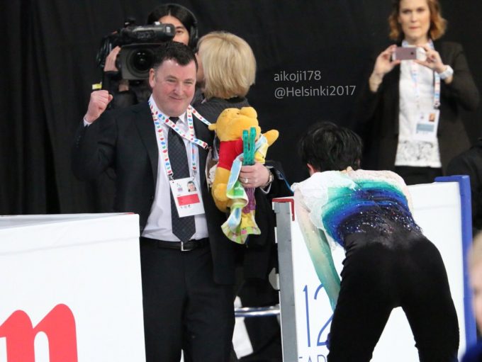 自らが持つ世界歴代最高得点を更新する223・20点をマークしてフリー1位となり、合計321・59点とした。SP2位の宇野昌磨(しょうま)(19)(中京大)はフリー2位で合計319・31点で2位となり、初めて表彰台に立った。世界選手権の1、2位を日本勢が占めるのは3大会ぶり。