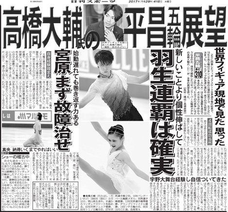 2日に閉幕したフィギュアスケート世界選手権の結果で、18年平昌五輪の日本シングル勢の出場枠は男子3、女子2に決まった。レベルアップが急速に進む中、男子の羽生結弦(22=ANA)は五輪2連覇を達成できるのか。現地で観戦した10年バンクーバー五輪銅メダルの高橋大輔氏(31)が、来季の展望を語った。