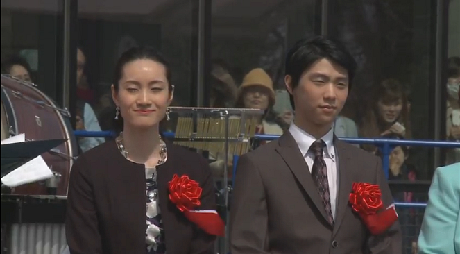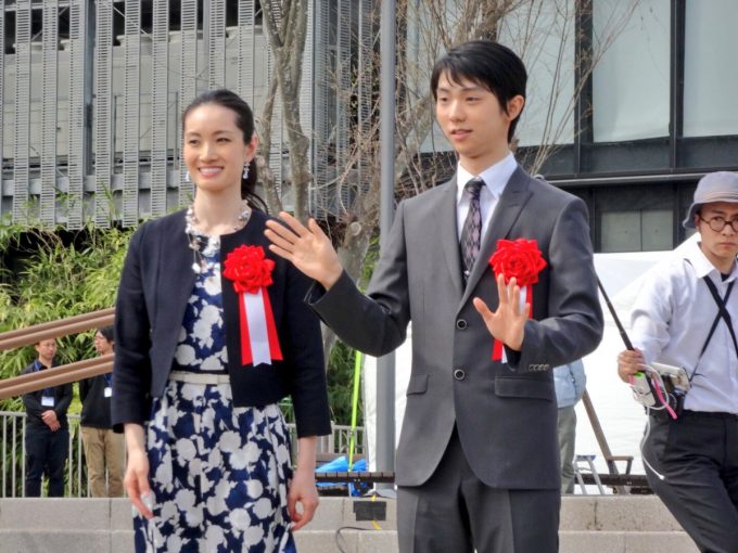 フィギュアスケートソチ五輪男子金メダル羽生結弦(22=ANA)、トリノ五輪女子金メダル荒川静香さん(35)が16日、仙台市内で行われたフィギュアスケートモニュメントの除幕式に出席した。