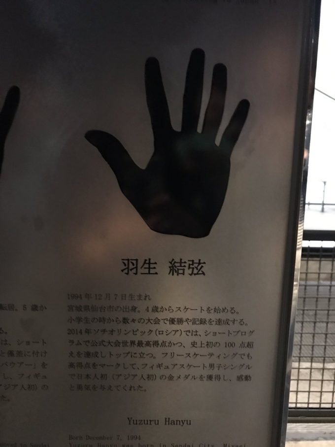 モニュメントは、羽生君の写真がもとだから。カッコイイ。
