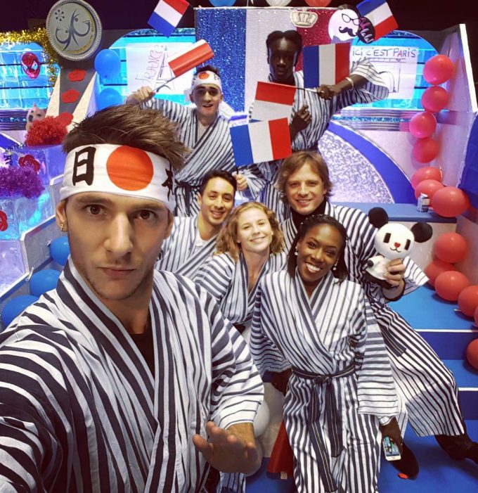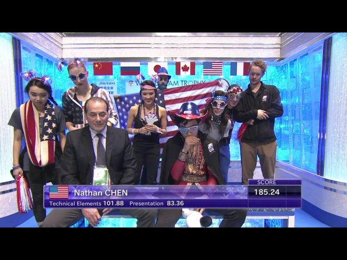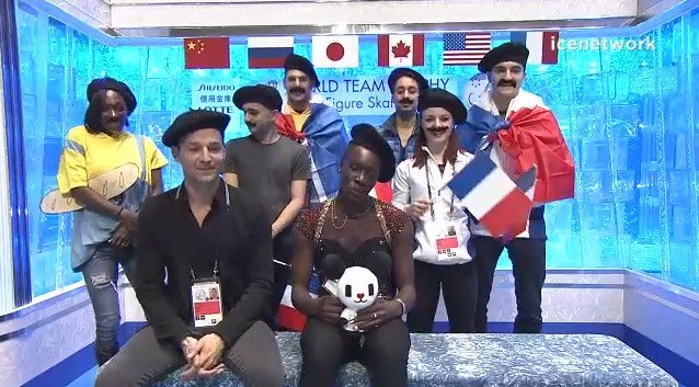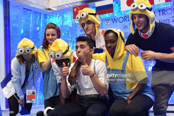 世界国別対抗戦2017。各国選手達の応援席でのコスチューム・パフォーマンスがどれも素敵。ボーヤンのお姫様抱っこも