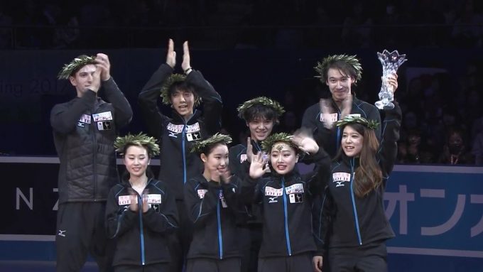 国別の団体戦で、日本が3大会ぶり2度目の優勝を果たした。最後の種目となった女子フリーで、三原舞依(17)=神戸ポートアイランドク=が日本歴代最高の146・17点で2位。樋口新葉(16)=日本橋女学館高=はそれに続く145・30点で3位に入った。ともにSPに続いて自己ベストを更新する演技で、優勝に貢献した。女子フリー1位は世界女王のエフゲニア・メドベージェワ(ロシア)で、世界歴代最高の160・46点を記録した。女子の160点超えは史上初となった。