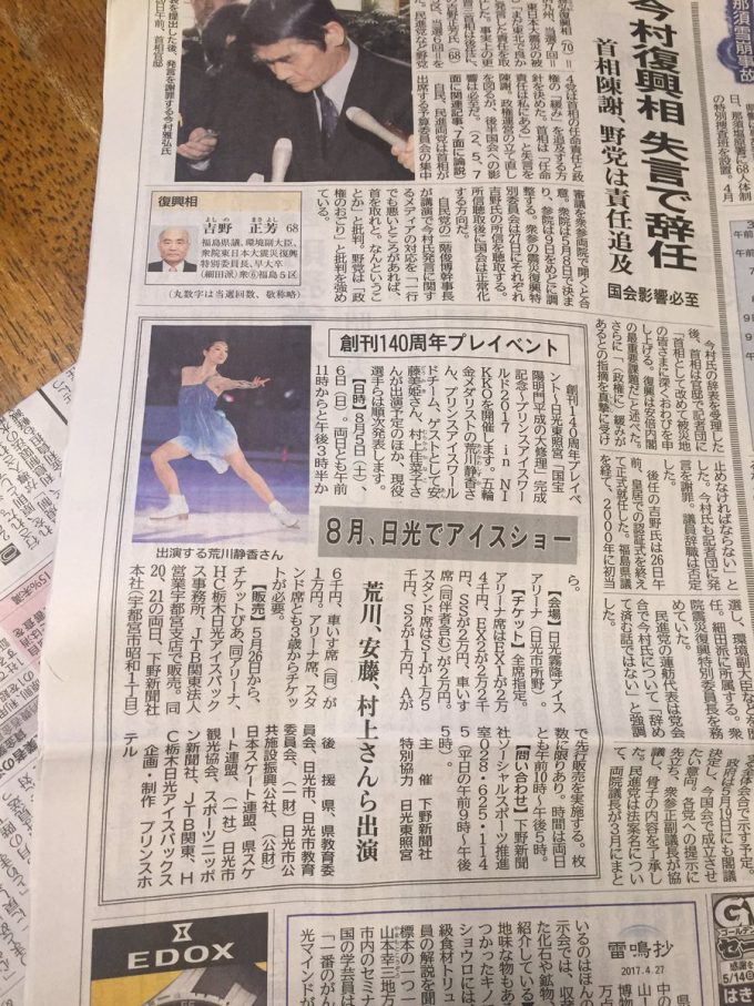 @今日の朝、地元の新聞を見ていたら…なんとPIW日光公演の知らせがありました😂💓8月5日(土)、6日(日)に日光霧降アイスアリーナでやるそうです!!