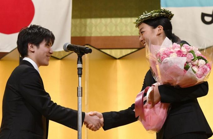 表彰式を終えた真央さんは、宇野からの花束に「もらえると思ってなかったので、ビックリした。今季はたくさんいい演技をして結果も出してくれたし、頼もしく感じました」と、成長した“弟分”に目を細めた。そして、改めて後輩たちに「今の日本は若い選手が多くて、これから大変なこと、乗り越えないといけないこともあると思うけど、山に負けないように乗り越えてほしい」と、優しくエールを送った。