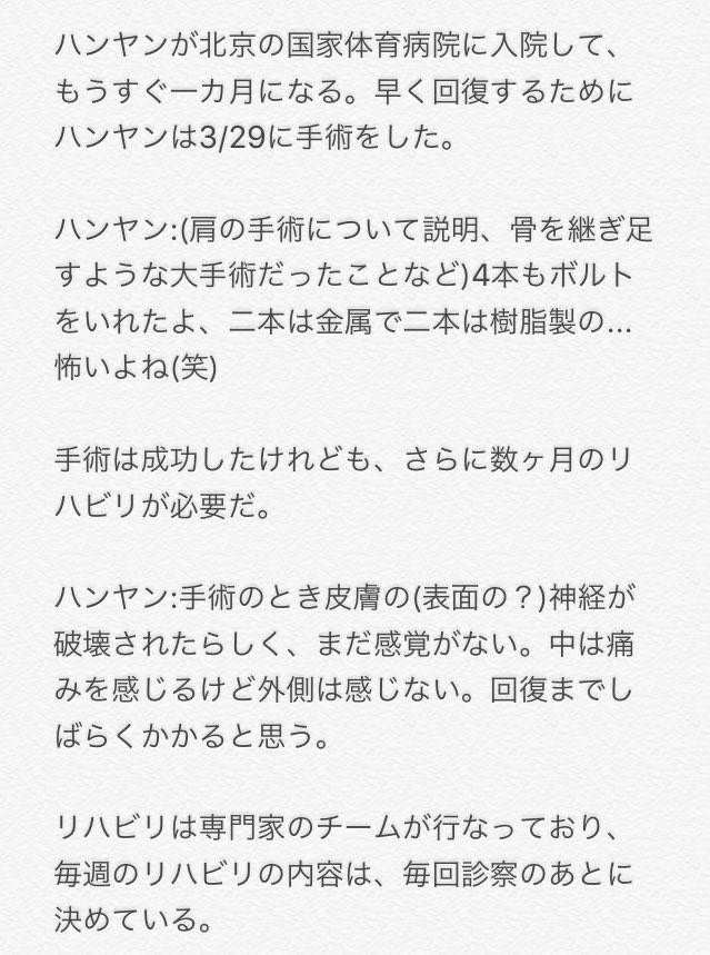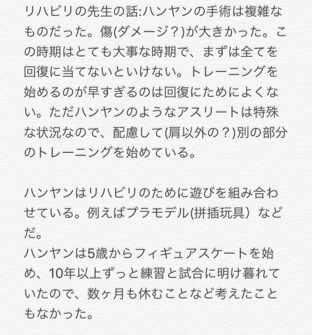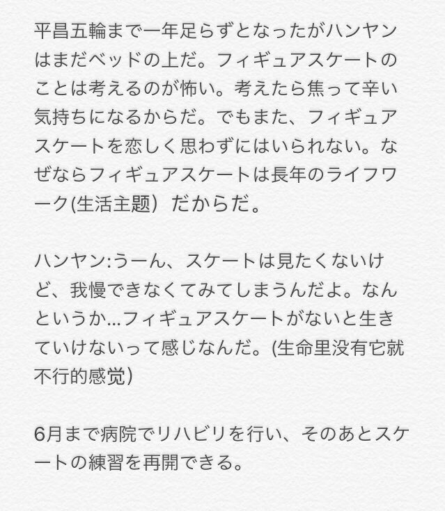 この辛いリハビリが少しでも短くすんで早く氷上のハンヤンに会えますように。