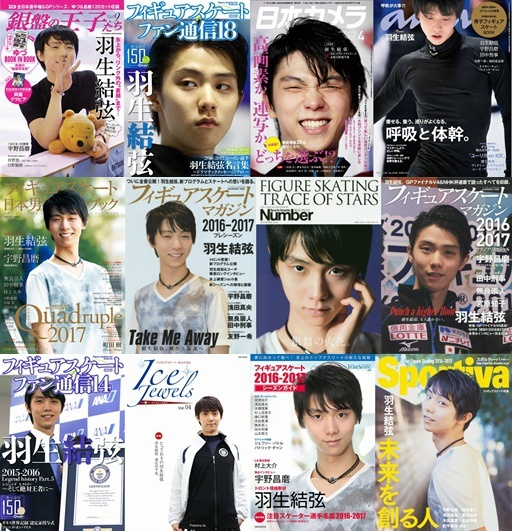 16-17シーズン羽生結弦が表紙の雑誌を並べて見ると圧倒的な数の多さで驚き