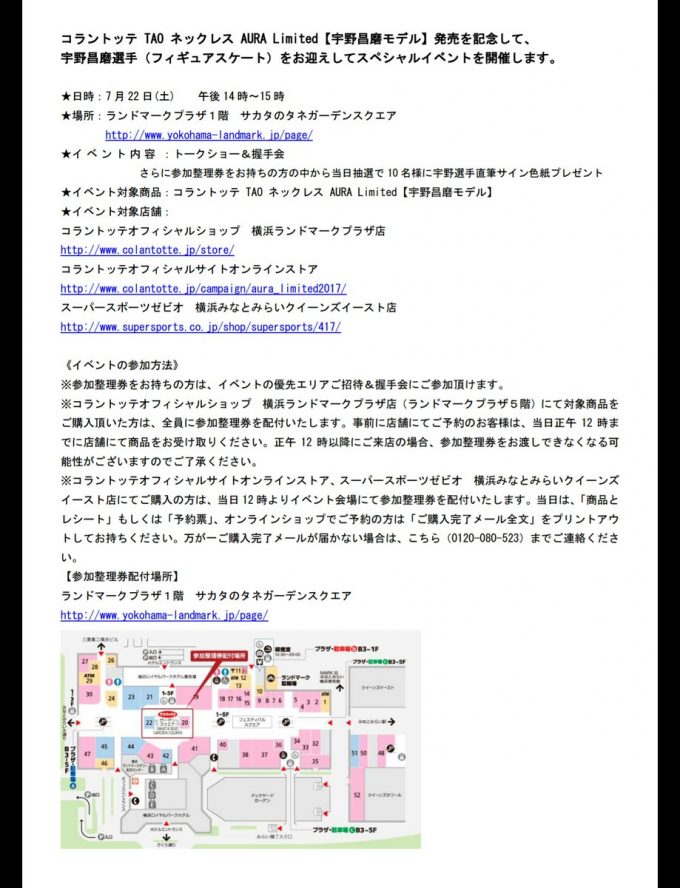 7/22横浜ランドマークでコラントッテさんの宇野選手イベント