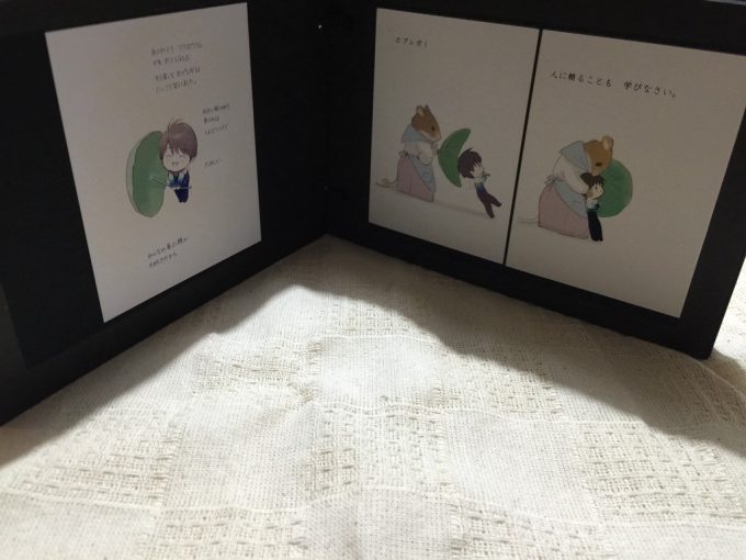 わ、すごい✨✨愛情があふれ出てます( ;∀;)全部見たい。一点物ですか?贈られる方が羨ましいです(๑°ㅁ°๑)
