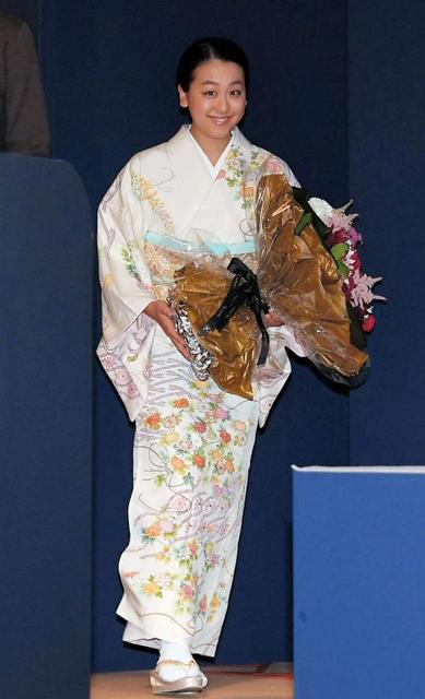 フィギュアスケートの元世界女王で、今年4月に現役を引退した浅田真央さん(26)が19日、都内で行われた寝具メーカー「エアウィーヴ」の10周年記念パーティーと、新CM発表会に出席した。艶やかな白い着物姿で登場した真央さんは「おめでとうございます。お祝いの場ということで、こんな素敵な着物を着させていただいて」と、笑顔で語った。