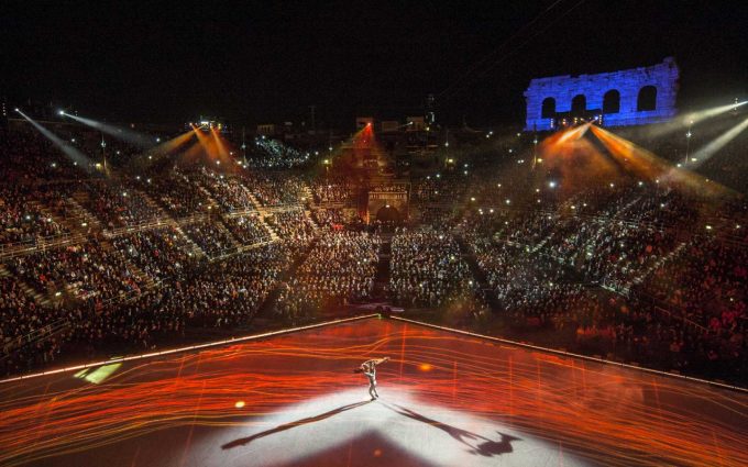 壮大なアイスショーの舞台は、これまでと同様に、夏期の野外オペラ公演で有名な古代ローマ時代の円形闘技場、アレーナ・ディ・ヴェローナです。