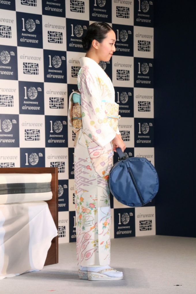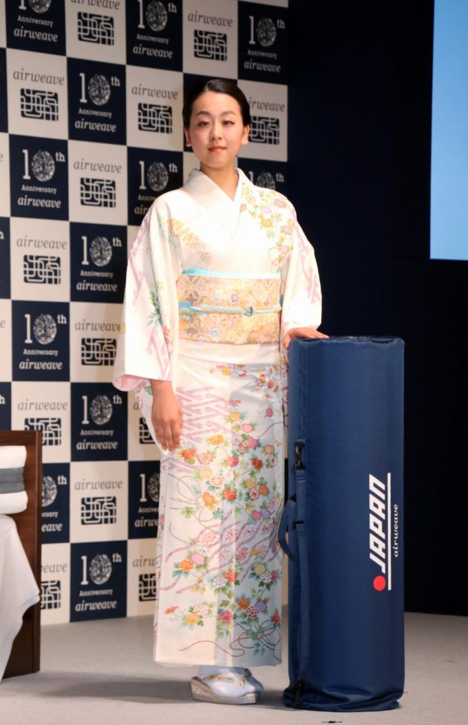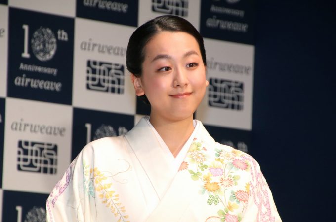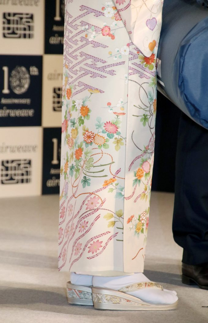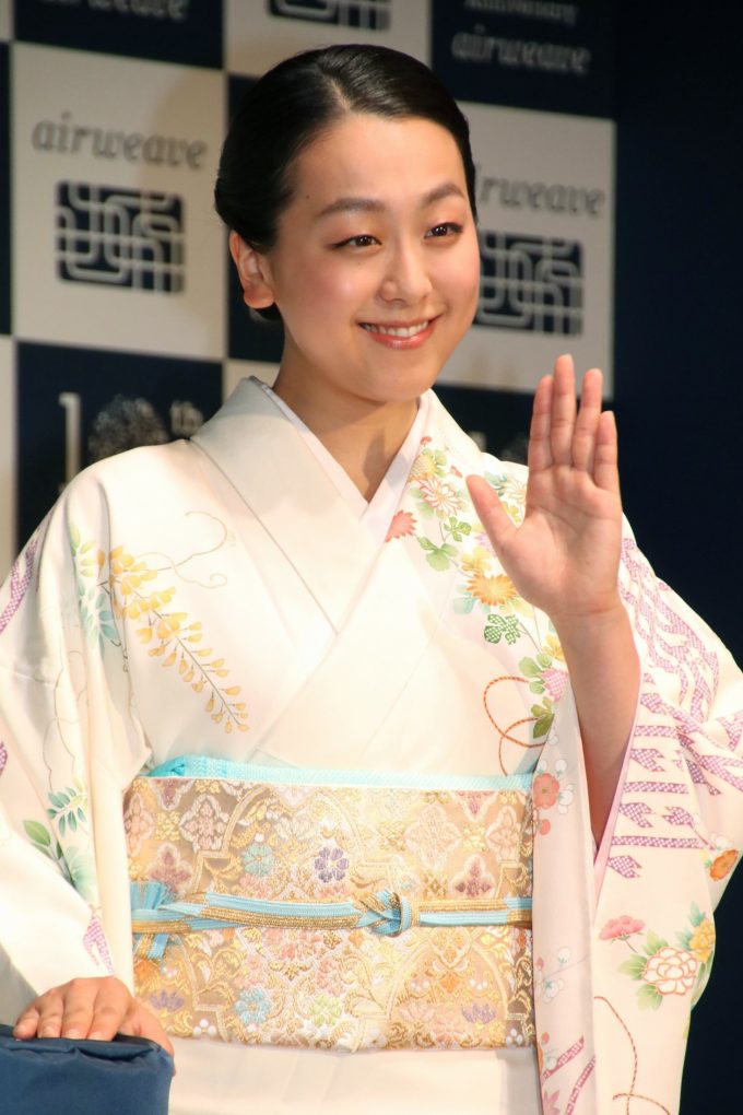 フィギュアスケートの元世界女王の浅田さんは19日、東京都内で行われた高反発マットレスパッド「エアウィーヴ」の発売10周年記念パーティーに、ブランドアンバサダーとして京友禅の一点ものという華やかな着物姿で出席した。白をベースに、草花の柄を全体にあしらったデザインの着物で、帯は金色の刺しゅうが全面に施された豪華なもので、「お祝いの場ということで、こんなにすてきな着物を着させていただきました」とほほ笑んでいた。