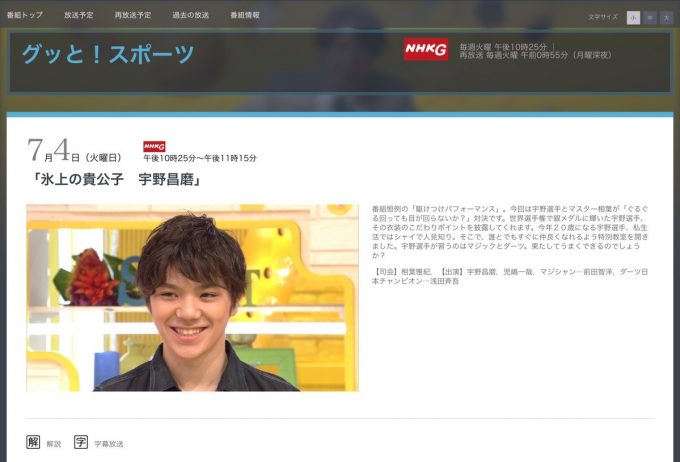 「氷上の貴公子 宇野昌磨」 - NHK 相葉雅紀がMCを務めるグッと!スポーツ。ゲストに昌磨くん!