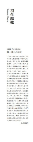 50人の中に日本人で唯一羽生くんが入ってたよね。海外では特に評価が高い人だものね。日本の宝です。素晴らしい。