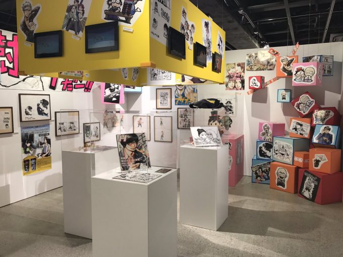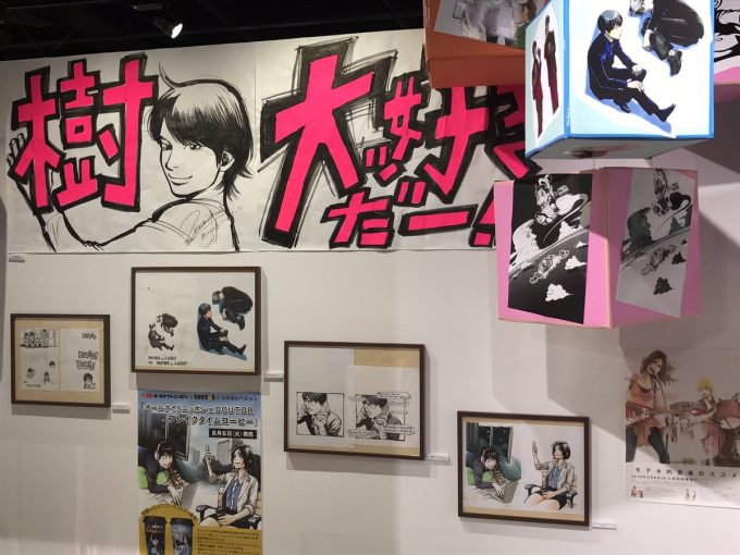 本展は久保の約20年にわたる画業を年代順に振り返る構成となっており、コミック原画展示ゾーンの入り口ではデビュー前の貴重な原稿もお目見え。少年誌デビュー作となる「3.3.7ビョーシ!!」をはじめ、「トッキュー!!」「モテキ」「アゲイン!!」といったヒット作の生原稿とカラーイラストが展示されている。作品資料、プロットやネームなどの貴重なアイテムも公開された。