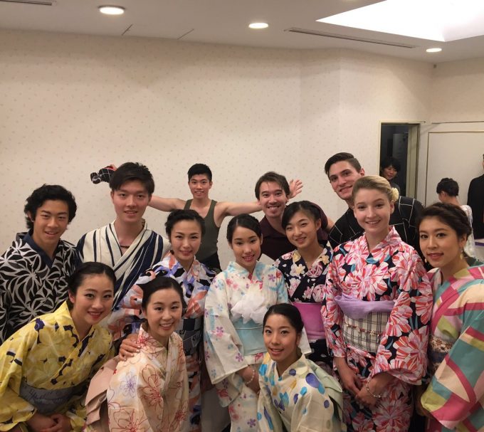 ネイサン・チェン選手と村元哉中選手の浴衣姿でのツーショット写真がお似合い。