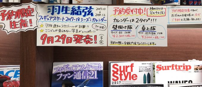 羽生結弦フィギュアスケートシーズンカレンダー2017-18が9/29発売予定です!