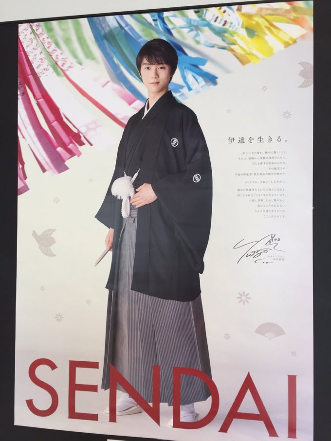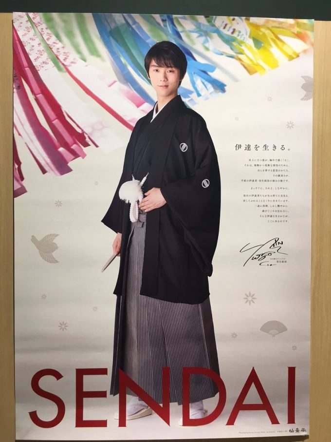 仙台観光アンバサダーの羽生結弦選手の観光PRポスターは、仙台駅2階の仙台市観光情報センターに掲示をしております。仙台駅にお越しの際はぜひ、はかま姿(仙台平)の羽生選手のポスターを見にお立ち寄りください!! pic.twitter.com/JcKTfowWCV