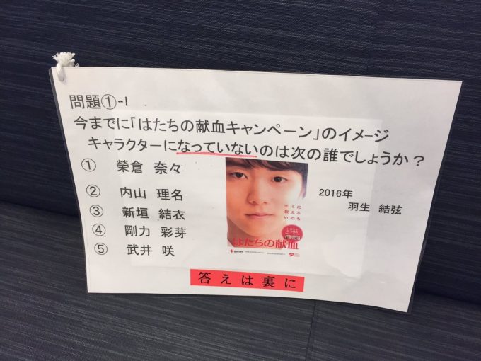 献血トリビアクイズにも、羽生さん