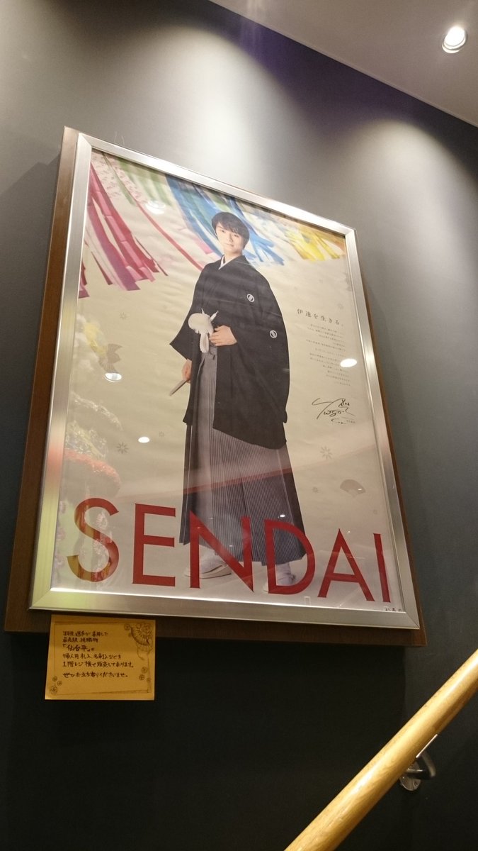 予想外に羽生君の仙台観光ポスターが画面に!袴姿!りりしい
