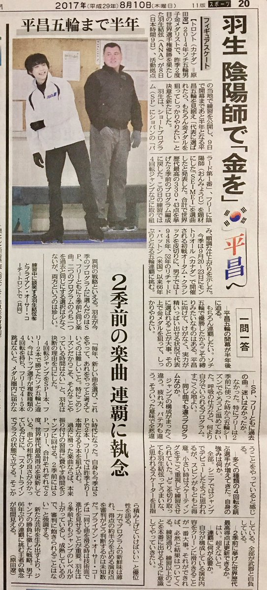 20170810#羽生結弦#自分記録用 pic.twitter.com/kIA3FxKhjW— ノエル໒꒱ ⡱⛸️💕 (@noenoe28) 2017年8月9日