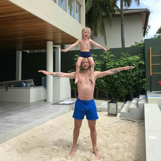 透き通る金髪と澄んだ青い瞳がパーパソックリだね!