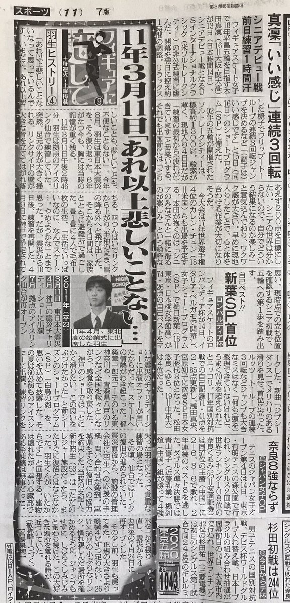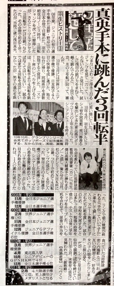 ニッカンスポーツの羽生ヒストリー。ちょっとこの写真!大きく見たい!!カラーで見たい!!記事紹介して下さってありがとうございます。