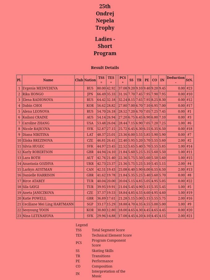 オンドレイネペラトロフィー2017:エフゲニア・メドベージェワ:SP