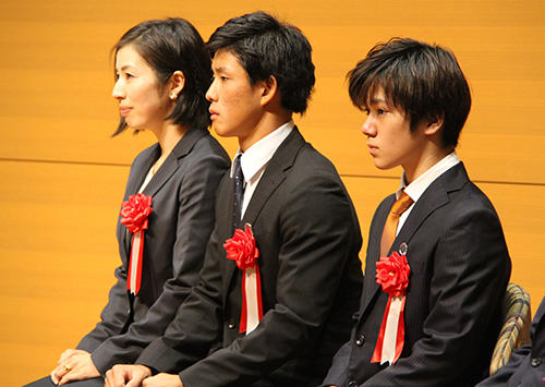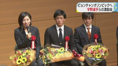 宇野選手は「まずは全日本選手権に向けて、オリンピックに出られるよう全力を尽くしたい」とあいさつ。また、大学では宇野選手の同級生という堀島選手は「種目は違うけど、精いっぱい追いつけるように。良い結果を出せるように大学生活を過ごしました」と話しました。