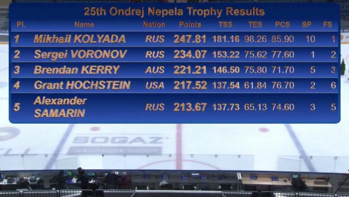 オンドレイネペラ杯2017。男子FSはミハイル・コリャダが4回転ルッツを決め優勝。田中刑事は8位
