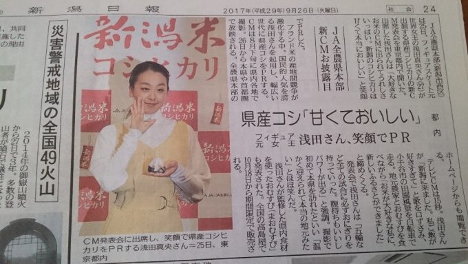 @NHKで真央ちゃんの新潟米のCMのニュースΣ(゚д゚lll) CMのないNHKなのに