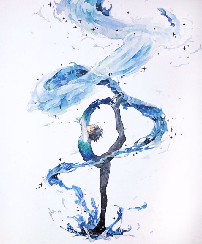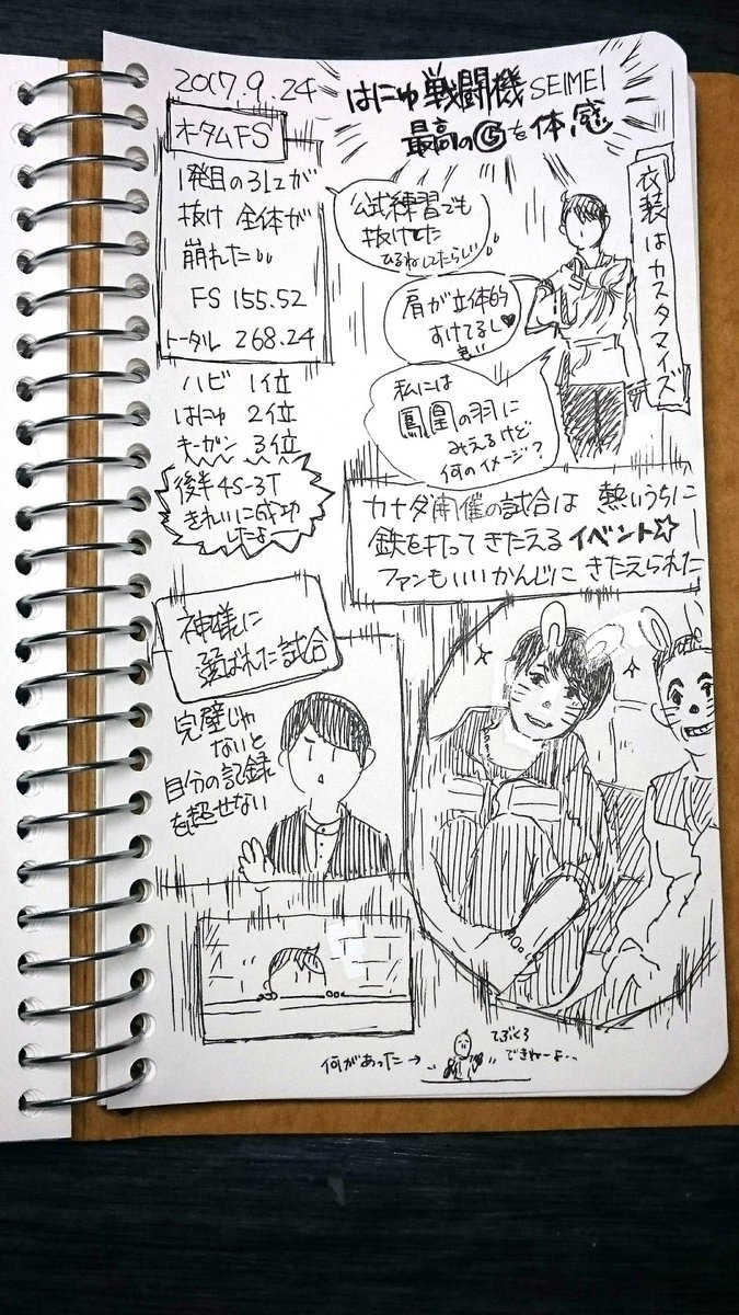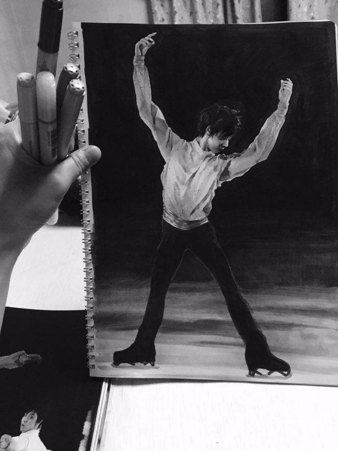 羽生結弦選手のイラストを書いて応援。「Gを耐えれば絶景が見える。」