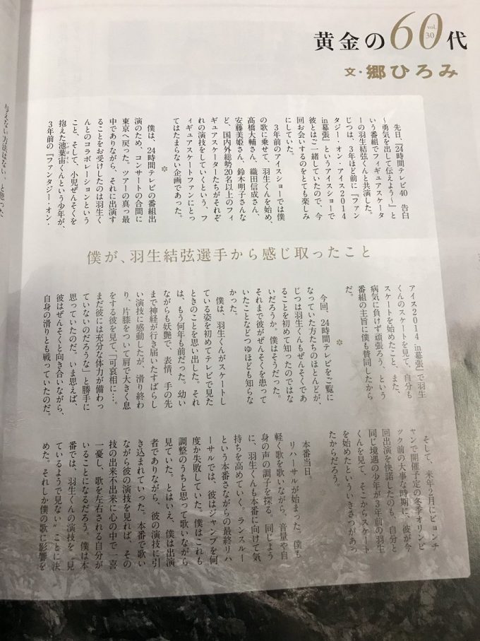 羽生さんの24TVの事を取り上げていて、そして素敵な言葉で綴られていて嬉しかったです。