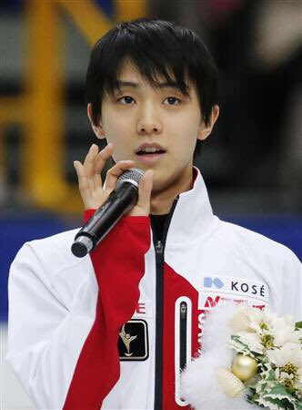 代表発表で挨拶する羽生さん見たい〜萌え袖+マイクの羽生さんを