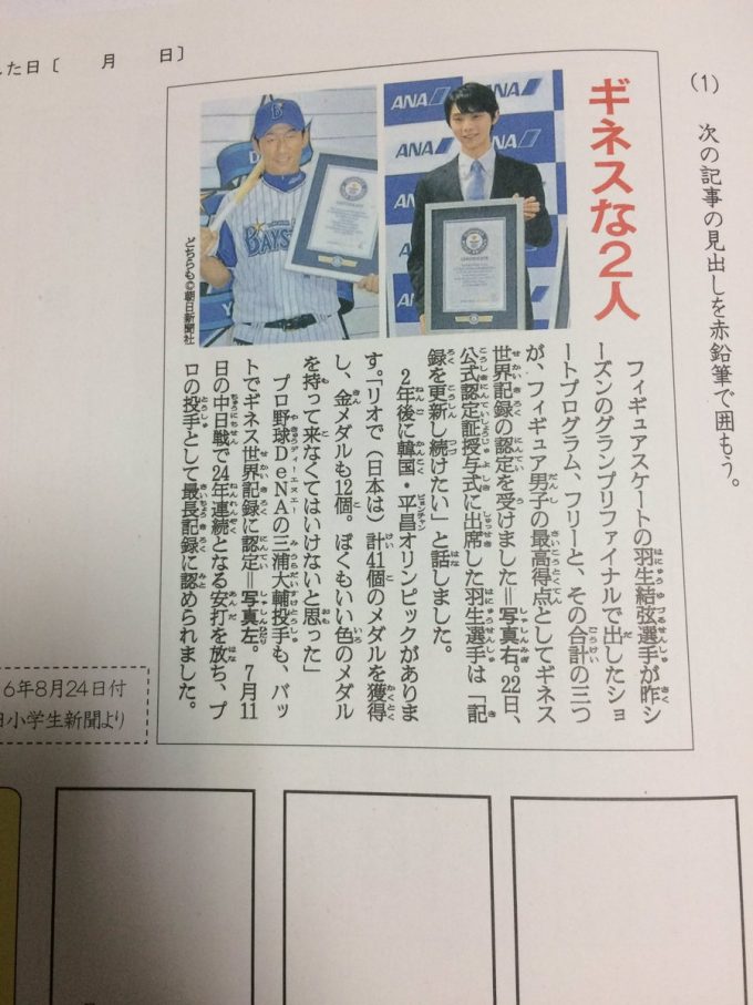 小5の娘の国語副教材にゆづ!! このページが宿題に出たので今頃気づいた… さすが仙台!!