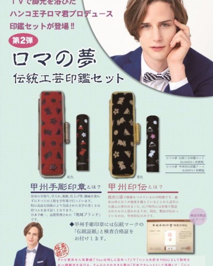 ロマトニオロ さんは ハンコ王子 として有名ですが弊社ではロマトニオロさんがデザイン・プロデュースした #ロマ の夢印鑑セットを発売しています。