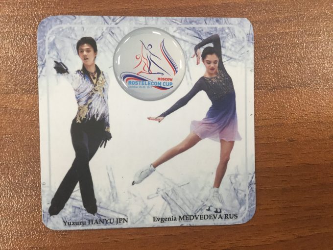 ロシア杯で売っていたマグネット。羽生結弦選手とエフゲニア・メドベージェワ選手。100ルーブル(200円くらい)でした。買った直後にその店では売り切れたみたいです
