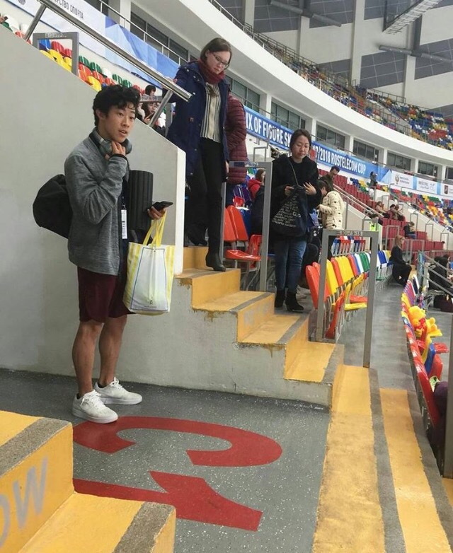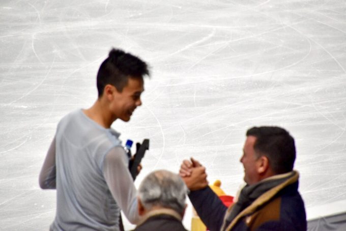 公式練習の入れ替わりの時にナム君とオーサーがにこやかに握手してた